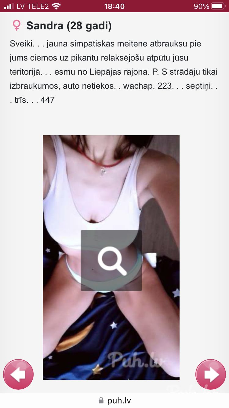 Sveiki. . . jauna simpātiskās meitene atbrauksu pie jums ciemos uz pikantu relaksējošu atpūtu jūsu teritorijā. . . esmu no Liepājas rajona. P. S strādāju tikai izbraukumos, auto netiekos. . wachap. 223. . . septiņi. . . trīs. . . 447