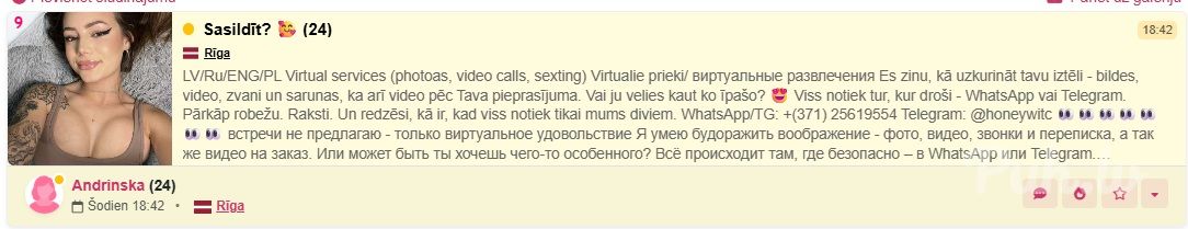 Čau 🙂 Ja meklē kaut ko interesantu un personīgu – piedāvāju īpašus video. Ir iespēja arī videozvanam. Raksti man, pastāstīšu vairāk 😉 Telegram: @kendijaa ❌ Tikšanās nepiedāvāju, Встречи не предлагаю, No meetings