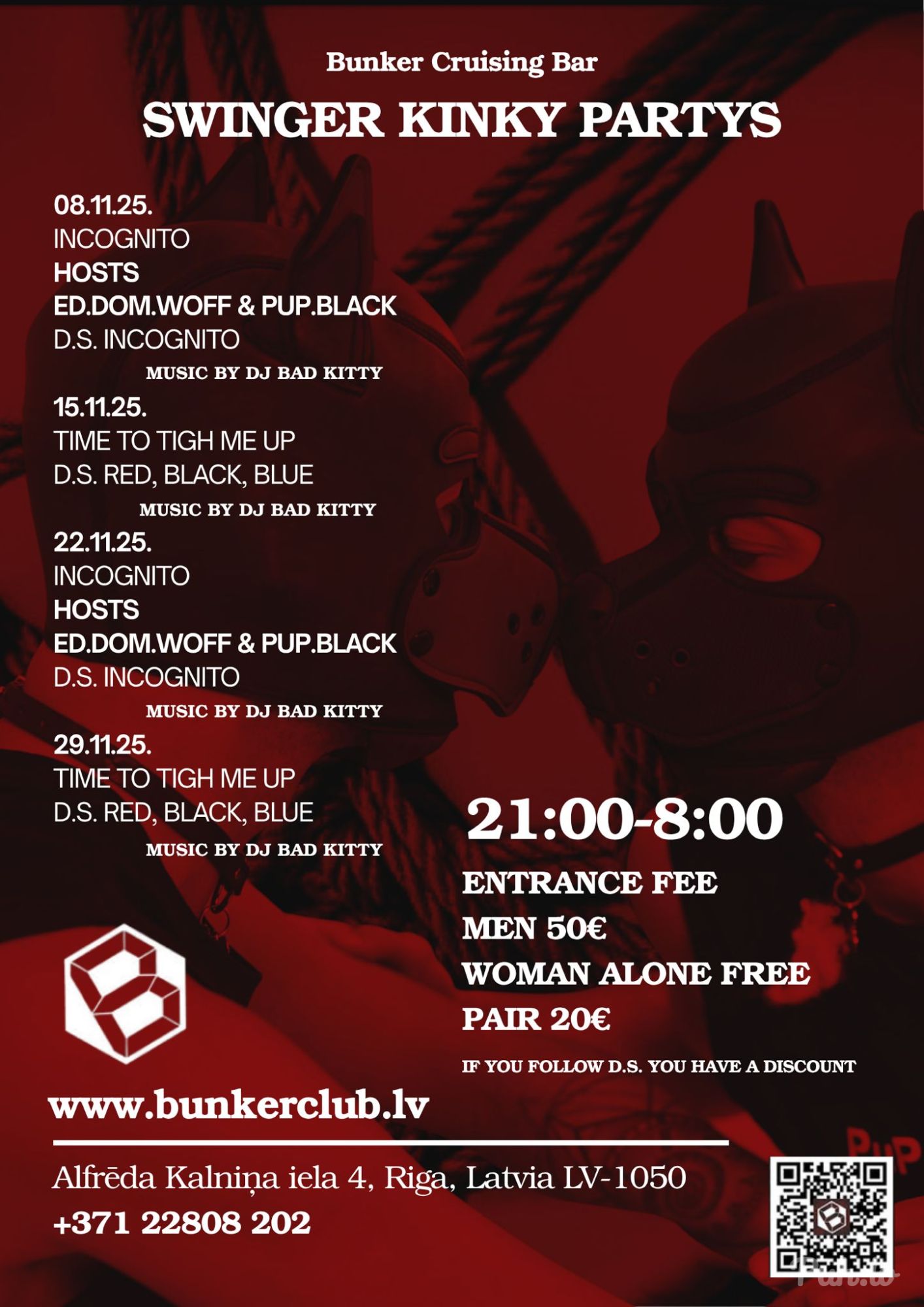 Pāriem - 10 € (lÄ«dz 23:00), pēc 23:00 - 20 €